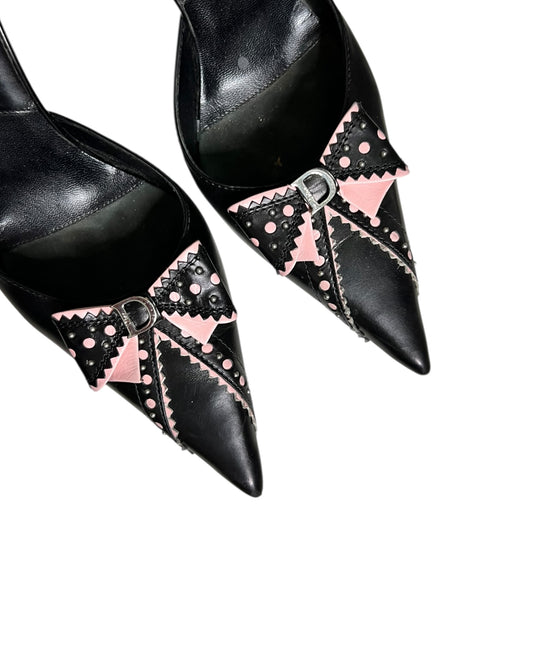 Christian Dior Vintage Bow Mule Heels Pink and Black Leather