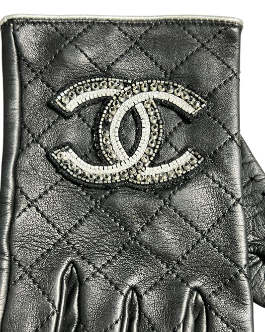 Chanel Leather Gloves Black Classic CC Logo Winter Gloves