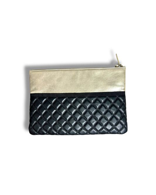 Chanel Pearl O Case Medium Quilted Lambskin & Calfskin Clutch Black Gold Hardware