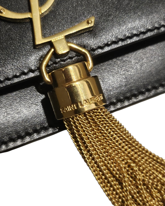 Saint Laurent Black Lambskin Tassel Wallet on Chain